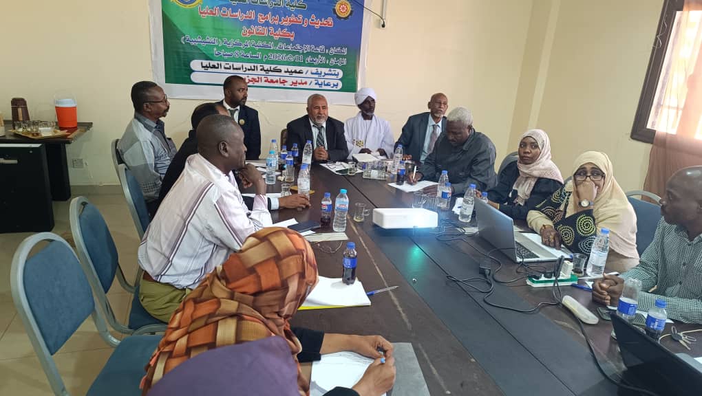 وترأس الاجتماع الأستاذ الدكتور جودة إبراهيم محمد النور، بحضور مقرر اللجنة الدكتور حاتم إبراهيم محمد أحمد، نائب عميد كلية القانون، عميد الكلية الدكتور أحمد النور الغالي حامد، وعميد كلية الدراسات العليا الدكتور ربيع أحمد محمد أسد، إلى جانب رؤساء الأقسام بالكلية، ولفيف من الخبراء والعلماء من جامعتي سنار والقرآن الكريم والعلوم الإسلامية.