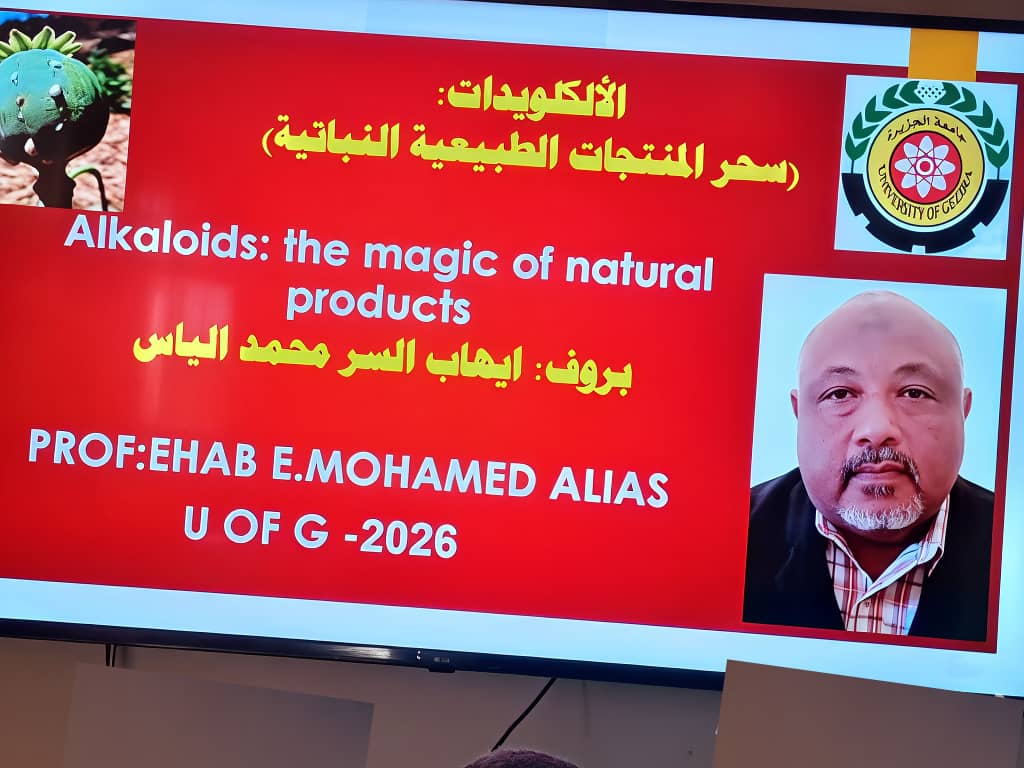 ضمن سلسلة الأنشطة العلمية بجامعة الجزيرة، أُقيم يوم الأحد الموافق 11 يناير بقاعة معامل محمد عبيد المبارك، سمنار علمي بعنوان «الألكلويدات: سحر المنتجات الطبيعية».